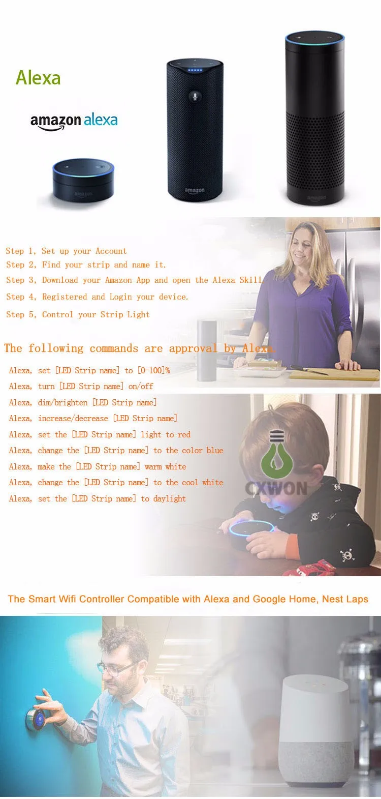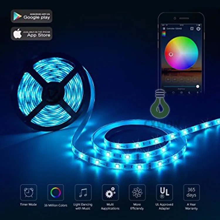 We can control the light color, intensity, and set up custom flash, strobe, fade colors, and flash to sound/music played from the phone, tablet . Great for holidays and events like Christmas, Halloween,Parties