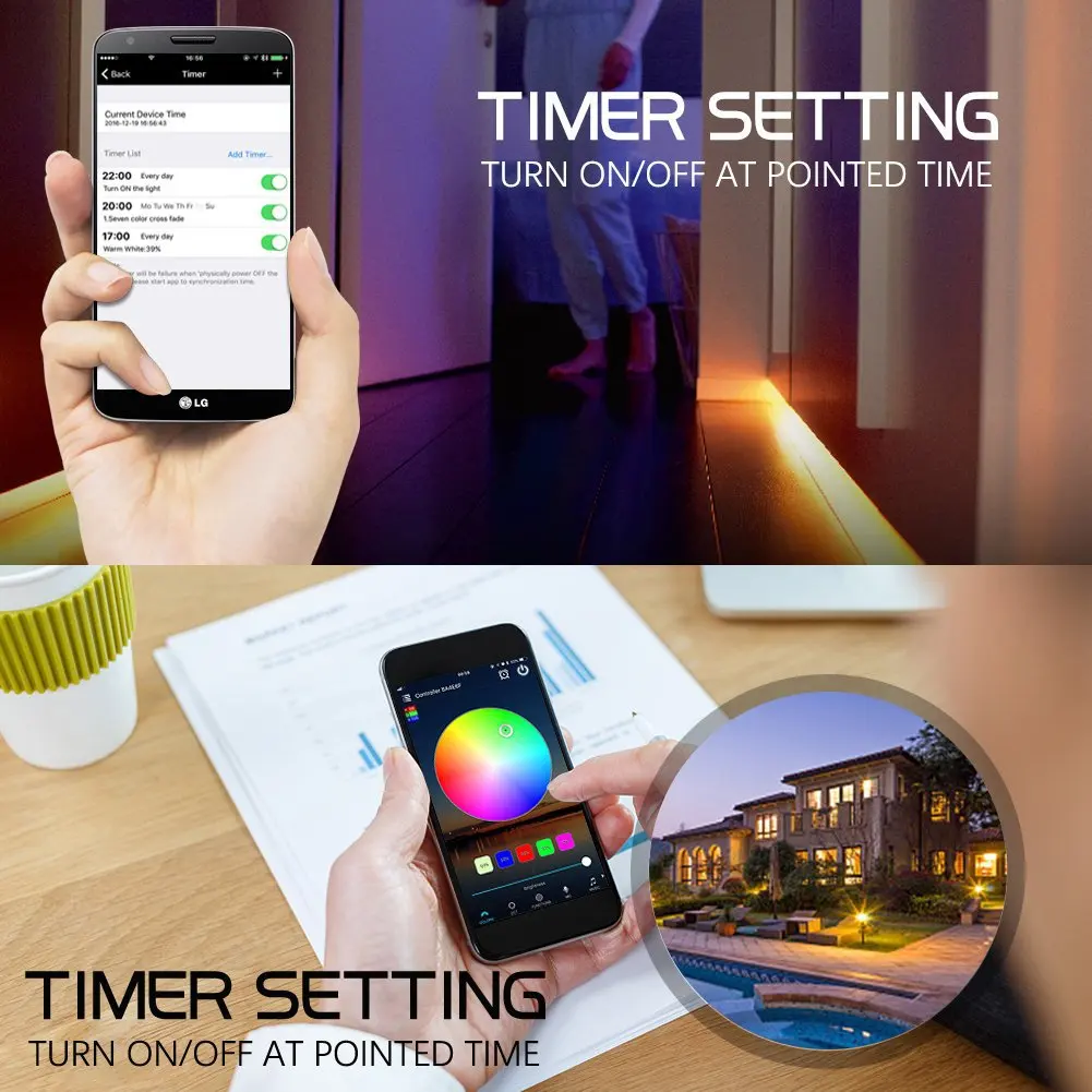 We can use the timer functions for waking up and setting a more ambient mood at bedtime; Set a schedule for the lights to automatically turn on and off on your schedule Package Contents: