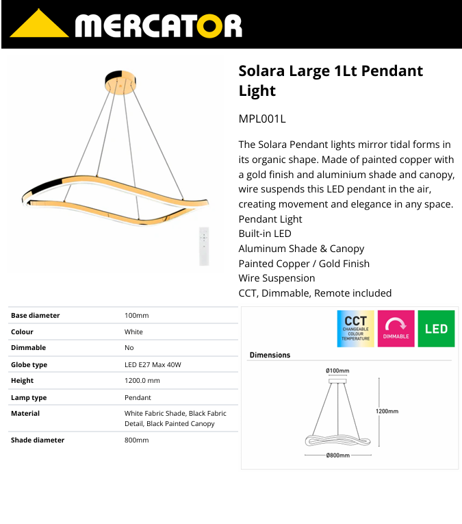Expertly crafted with a painted copper body in a luxurious gold finish, complemented by a high-quality aluminium shade and canopy, Solara delivers both durability and designer appeal. Suspended by a sleek wire system, the pendant appears to float effortlessly in the air, adding depth and movement to your space.
